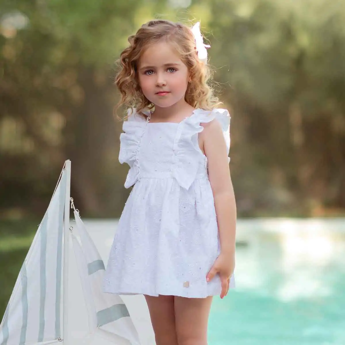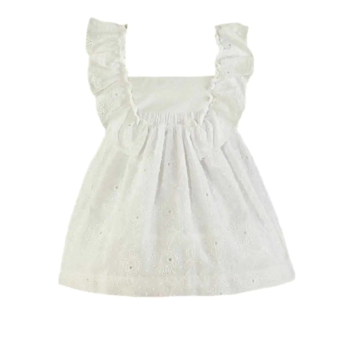 Sweet and charming, this white dress for girls is by Miranda. Made from lightweight cotton for added comfort.