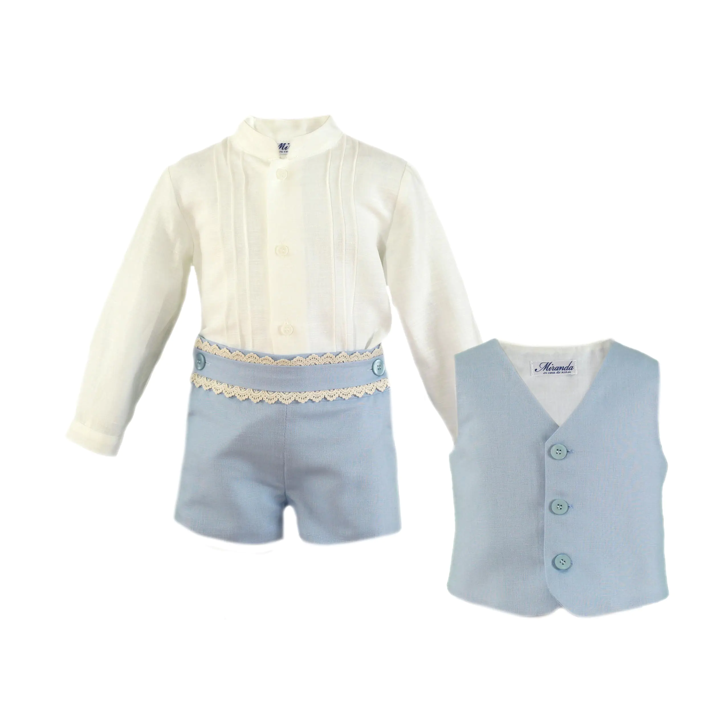 Ivory and light blue shorts set for boys by Miranda.