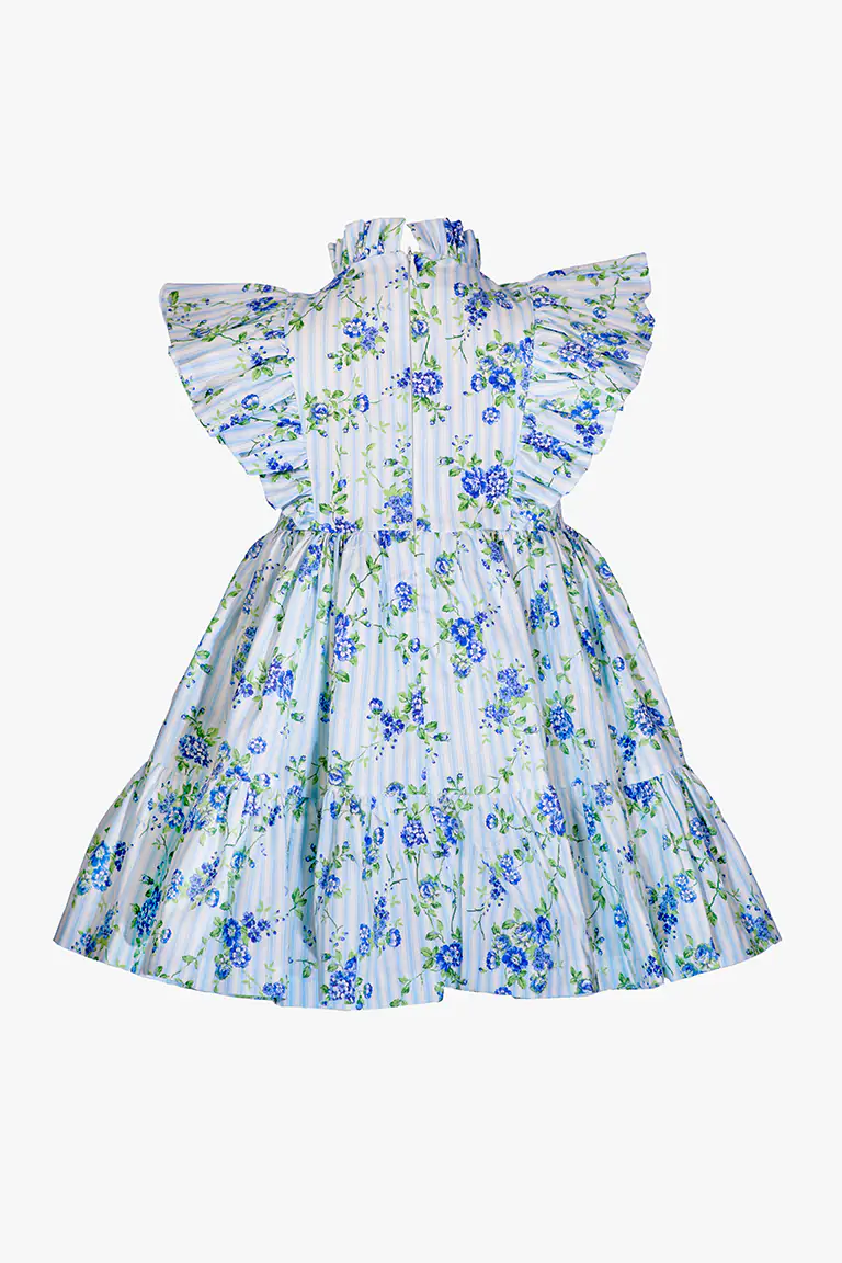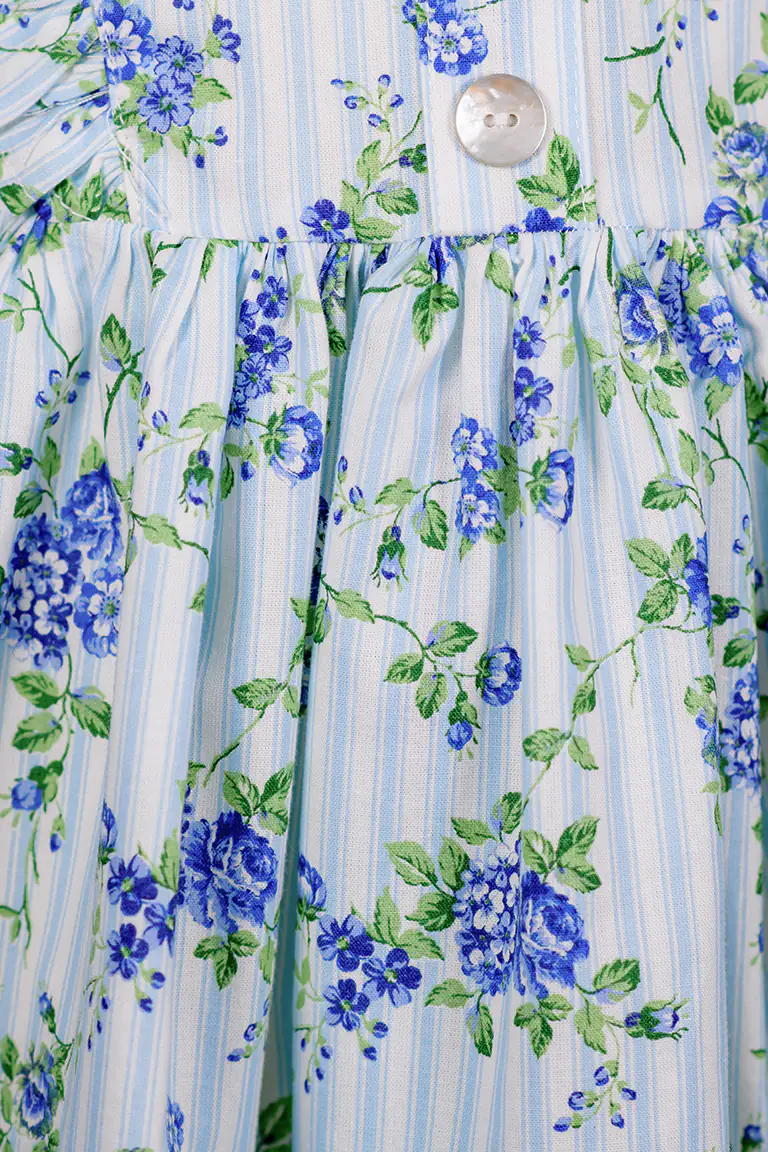 Beautiful dress with pointed collar, ruffle neck and fixed grosgrain bow, pearl buttons for decoration on the front and full skirt, concealed zip at the back - and lined with petticoat. Comfortable and easy to wear.